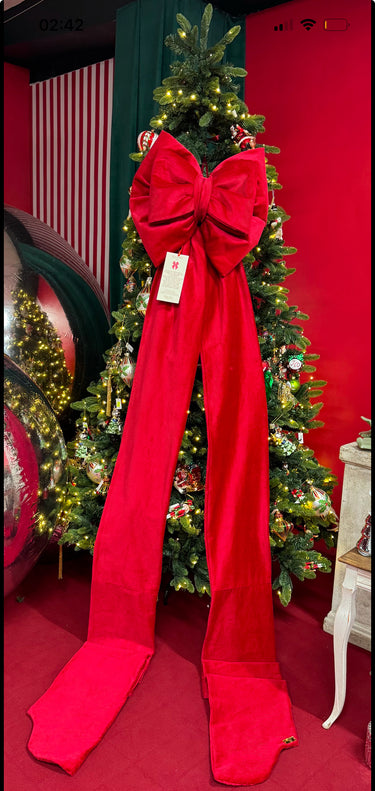 Un fiocco raffinato e di tendenza per il Natale 2025, realizzato in velluto di alta qualità e disponibile nelle tonalità rosso, verde e bianco. Con la sua altezza imponente di H300 cm, diventa il protagonista assoluto di ogni decorazione, aggiungendo un tocco romantico e scenografico.