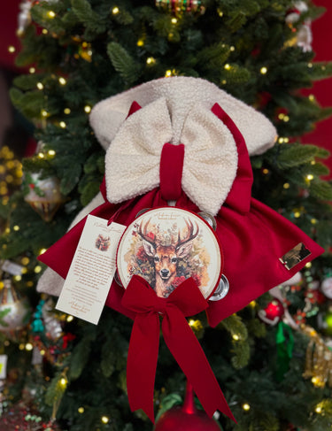 A impreziosirlo, un pendente a tamburello raffigurante un cervo fiorito che dona un tocco festoso e tradizionale.